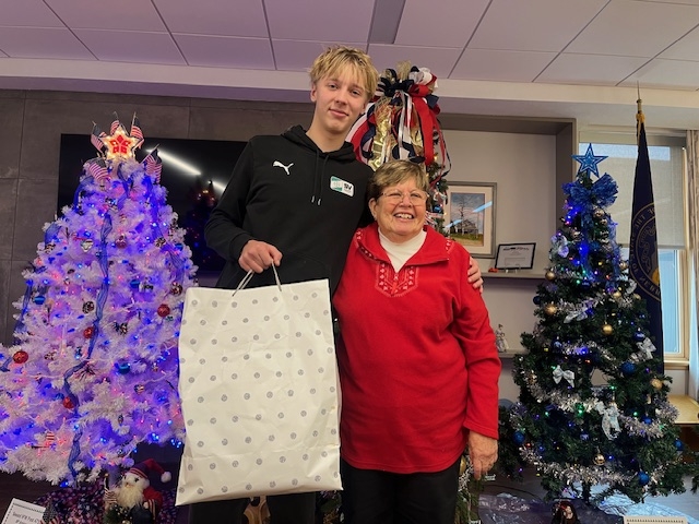 GFWC Seward Woman’s Club President, Bonnie Kruse presented Linus with a large gift bag of Seward Gifts from the GFWC Seward Woman’s Club, welcoming Linus to Seward and Nebraska, They are wishing him all the best with his new second semester at Seward High and thanked the Arnold’s family for giving him the opportunity to experience the “Nebraska Good Life.”