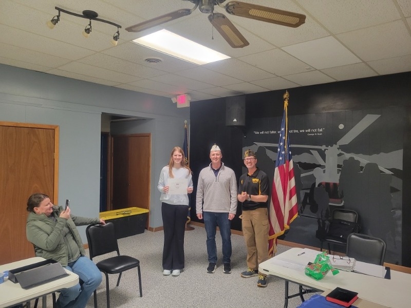 Seward High School Sophomore, Carly Kolterman was named the winner in the recent Seward VFW Post 4755 annual “Voice of Democracy” Speech Contest for 2025-2026. The student’s theme for this year’s essay/speech was “How are you showing patriotism and support for our country?”